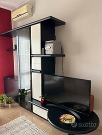 Vetrinetta nero opaco con cassetti e sportelli bianchi e tavolino removibile ritiro e smontaggio a carico dell’acquirente