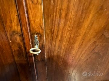 Vetrinetta o credenza stile liberty primi ‘900 tenuta maniacalmente bene con ottime rifiniture nessuna ferramenta mancante perfettamentefunzionante. Vetri con decori. No spedizioni solo ritiro