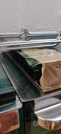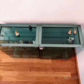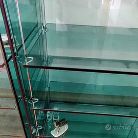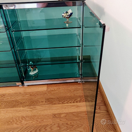 Ottimo complemento d'arredo Struttura composta da due elementi separati (misure h76xlarg60xprof 35 circa a pezzo) tutta in cristallo temperato con supporti dei ripiani in acciaio cromato .