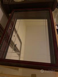 Vetrinetta da appendere con specchio interno e mensole di vetro da appendere al muro utile per collezionare bomboniere