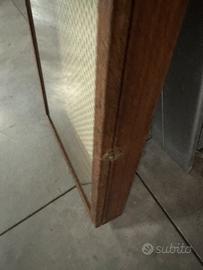 Vetrinetta da tavolo legno e vetro per collezione di piccoli oggetti. Misura 40 × 55 circa legno noce rivestimento in carta cartiglio molto in ordine, acquistata da un antiquario.