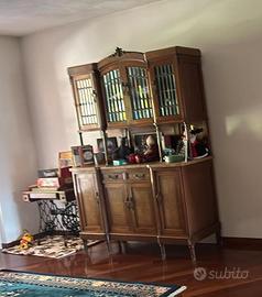 Vetrinetta del 900, composta da base a 4 ante e due cassetti con alzata in legno e piano in marmo. Vetrina superiore a 4 ante con ripiani interni. Misure: larghezza 165 cm, profondità 55 cm , altezza 220 cm. Il mobile si trova a Gossolengo a piano terra, ritiro e trasporto a carico dell'acquirente, non si effettuano consegne o spedizioni.