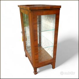 Questa vetrinetta sagomata con vetri anticati e lavorati a mano è un pezzo di arredamento elegante e raffinato. Il mobile è realizzato in legno pregiato con una finitura lucida che esalta la venatura naturale. La parte superiore presenta un design a forma di raggio che attira l'attenzione con la sua bellezza unica. Le ante in vetro lavorato a mano permettono di ammirare gli oggetti esposti all'interno, mentre le mensole in vetro creano uno spazio espositivo aggiuntivo. La struttura robusta e la lavorazione artigianale di alta qualità rendono questa vetrinetta un pezzo da collezione che si adatta perfettamente a un ambiente classico o vintage.