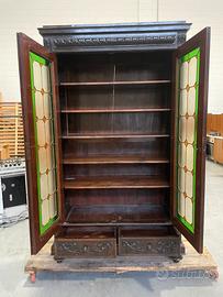 vetrinetta fine 800, ante in vetro con ornamenti. Dimensioni: Lunghezza 125 cm Altezza 223 cm Larghezza 50 cm Il mobile è da restrutturare.