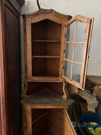 Vetrinetta in legno angolare d’antiquariato