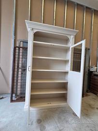 Vetrina in legno con ante in vetro e ripiani interni realizzata da falegname. Misure: H 255cm L 150cm P 45cm
