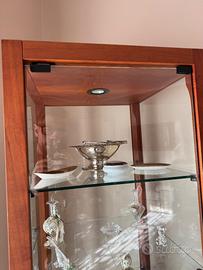 Vetrinetta in legno con mensole in vetro, porta in vetro. Luce incorporata. Pari al nuovo. La spedizione è a cura mia.