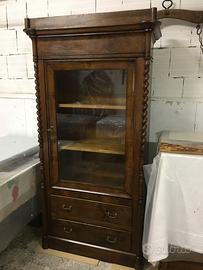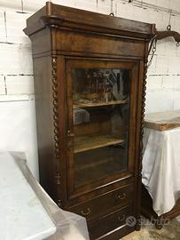 Vetrinetta in legno noce, abete e radica. Cm 90x49 h. 198 Larghezza tetto cm 103 Profondità mensole interne cm 35