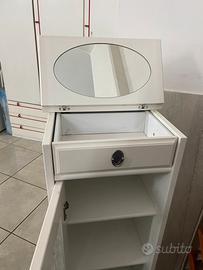 Bellissima vetrinetta in legno stile shabby chic , con specchio richiudibile e cassetto, misure altezza 120 cm, larghezza 39 cm, profondità 33 cm