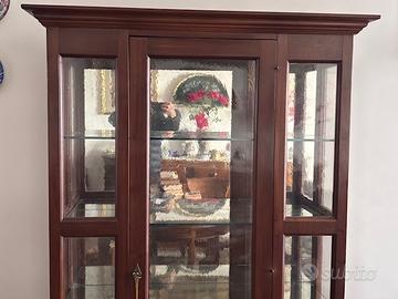 Vetrinetta in arte povera, realizzata in legno massello. Due ampie ante in vetro, ripiani interni in vetro, due cassetti. Condizioni: ottime. Stile: arte povera in legno massello.