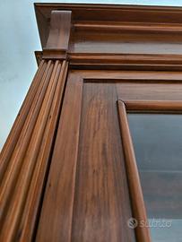 vetrinetta primi 900 in noce massello con 4 ripiani, un cassetto e manigne in stile vintage. misure 115x58 h 222 cm