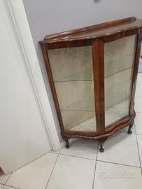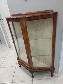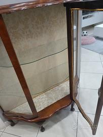 Vetrinetta inglese mezzaluna ottime condizioni con stoffa interna e mensole in vetro Misura H116L106P32