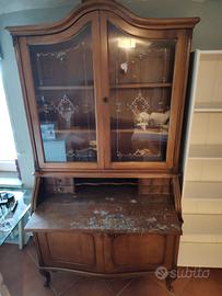 Vendo causa trasloco Vetrina / scrittoio con cassettini in 2 pezzi , facile Da trasportare Da scartavetrare solo la parte della ribaltina poiché macchie di pittura o da dipingere shabby . In complesso gradevole