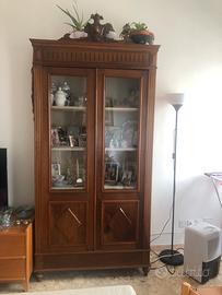Causa trasferimento vendo vetrinetta in legno primi ‘900, interno completamente foderato, decoro superiore removibile. Misure profondità 40 cm larghezza 106 cm, altezza 2 metri,il rivestimento interno è da cambiare, presenza di macchie per l’età del mobile