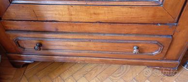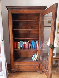 Libreria vetrinetta con anta in vetro e ampio cassetto inferiore.
