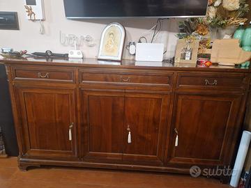 Vendo per cambio arredamento vetrinetta (120x40x200), mobile basso (200x52x100) e tavolo (160x90x79 allungabile fino a 240 cm). Prezzo per tutti e 3 i pezzi euro 550. Prezzi pezzi singoli vetrinetta euro 250, mobile basso euro 250, tavolo euro 150.