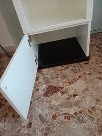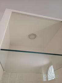Vetrinetta moderna alta 2 metri e 20 centimetri circa e 50 cm larghezza e 47 profondità.Cinque ripiani in cristallo, e uno scomparti chiuso con sportellino.Possibilità di mettere un faretto interno. Molto spaziosa, ideale anche per negozi.Ritiro a carico dell acquirente,si possono smontare solo le mensole il resto e fisso.