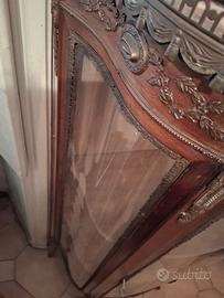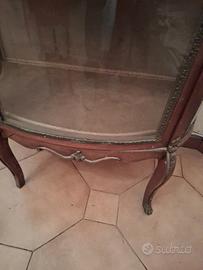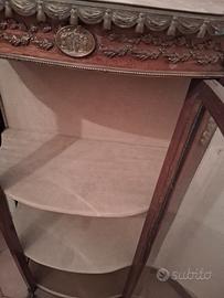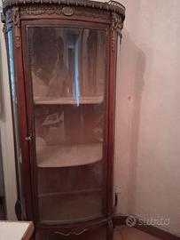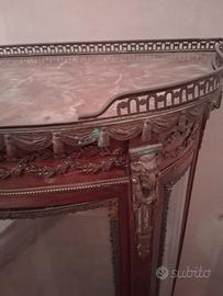 Raffinata vetrinetta Napoleone III. Bronzi di qualita'. Piano superiore marmo. Vetri soffiati mossi ,bombati. 3 piani interni. misure: altezza cm 140. larghezza cm. 70 profondita' cm 35. interni foderati.