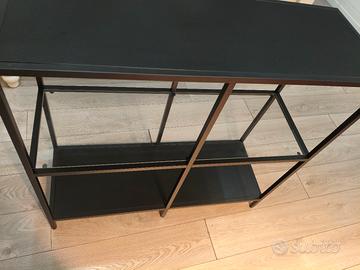 Vetrinetta nera orizzontale a tre piani, due mensole (la prima e l ultima) in mezzo mensola a vetro