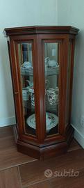 Vetrinetta ottagonale con cristalli a 3 piani. Ideale per un angolo della casa o come tavolino. Altezza cm 80, diametro cm 45.