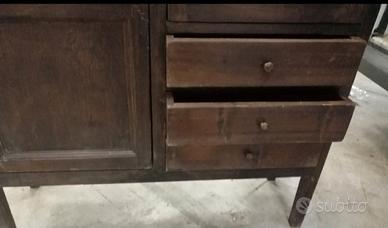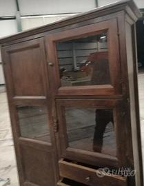 vendo vetrina arte povera. completa e conservata come da foto. molto particolare x il suo genere, composta da un anta due sportelli a vetro e 3 cassetti. 120x49 h180 circa..