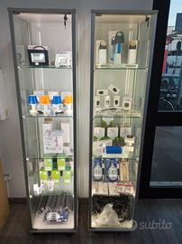 VENDESI DUE BELLISSIME VETRINETTE IN VETRO CON PROFILI IN ALLUMINIO SATINATO ,CON ILLUMINAZIONE A LED, DIMENSIONI 41,5 X 41,5X 175 CM.
