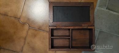 vetrinetta, ideale per riporre chiavi o altri piccoli Oggetto. con ganci da appendere al muro, legno antichizzato. Fatto da un artigiano. Antica davanti con specchio.
