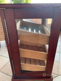 Vendo vetrinetta porta sigari in buone condizioni compresa dí 2 scatolette umidità usata come espositore in una tabaccheria. Le striature che si vedono sui cassetti sono degli aloni rimasti a causa dello scotch usato per etichette prezzi sigari. Misure altezza 50 cm, larghezza 33,5cm profondità 29 cm.Per informazioni non esitate a contattarmi.