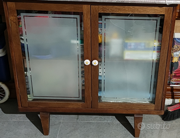 Vendo mobiletto con ante a vetro , porta TV in legno ottime condizioni con ripiano interno
