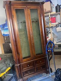 Vetrinetta portafucili in legno massello con ante in vetro e quattro cassetti