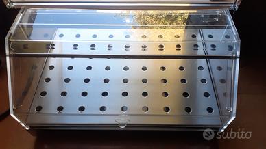 Vendo vetrinetta scalda vivande elettroca con regolazione temperatura e termostato. Con cassetto umidificatore. Dimensioni larghezza 50 cm x altezza 25 xm e profondità 36 cm. In acciaio inox e plexiglass. ⚠️ attenzione che su sportello apertura lato banco il plexiglass presenta un difetto (taglio) facilmente riparabile. Lato cliente perfetto. Prezzo richiesto 75 euro non trattabili.