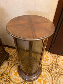 Vendo vetrinetta legno e vetro,alta 87cm,diametro 42cm.Due ripiani interni in vetro.