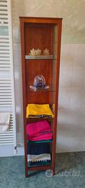 Vetrinetta scaffalata (in vetro) con angoli di legno massello lucido. Perfette condizioni. Dimensioni HLP 175x40x40.