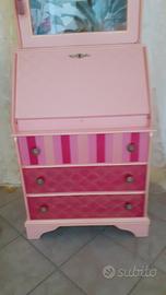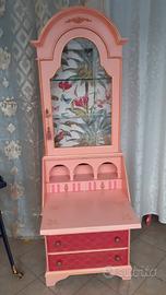 Bellissima vetrinetta in stile shabby, con ribalta. All'interno una decorazione con carta motivi tropicali. possibilità di visionare il mobile senza impegno. Ritiro a carico dell'acquirente Il mobile è comodo da trasportare in quanto è divisibile in due pezzi. No perditempo grazie
