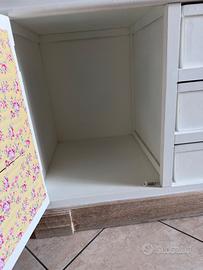 Vendo Vetrinetta shabby chic molto bella con pastiera con vetri,2 ante e tre cassetti Ha piccoli segni di usura perciò il prezzo basso,pagata 1500 euro la vendo ad 800