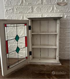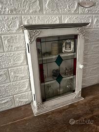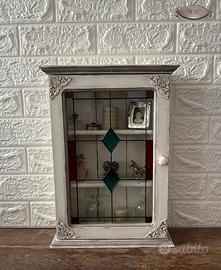 Vetrinetta in legno Vintage dipinta e decorata a mano in stile Shabby Chic. Dimensioni: L30 H 42 P 10 cm