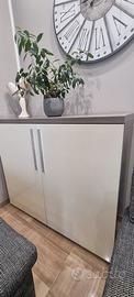 Vendo vetrinetta da soggiorno, cucina in ottimo stato. Colore beige lacato e grigio frassino. Dimensioni 100×120×42