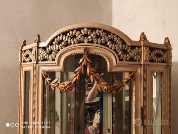 Vendo elegante vetrinetta stile '700 Francia risalente ai primi del ’900, realizzata in legno massello finemente intagliato con dettagli dorati.