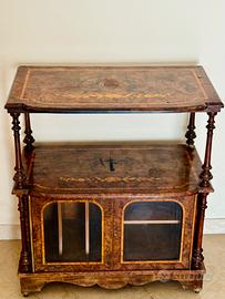 Vendo vetrinetta in legno stile classico, elegante e decorativa, con finitura effetto radica e raffinati intarsi floreali sui piani.