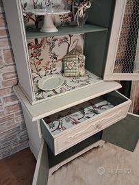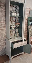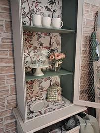 vetrinetta rivisitata nel colore bianco avorio interni verdi con carta da parati altezza 204 cm Profondità 41 cm larghezza 71 cm