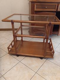 Vetrinetta ciliegio massello Gervasoni 45x205x125 + tavolo ciliegio massello 90x160 allungabile fino a 2 m. Gervasoni + carrello servitore in midollino Gervasoni + 5 sedie in midollino Gervasoni.
