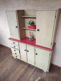 Vetrinetta per taverna o altro uso in ottime condizioni, con cassetti e antine basse e due alte con mensole. la formica e il rivestimento sono praticamente come nuovi. Misure: