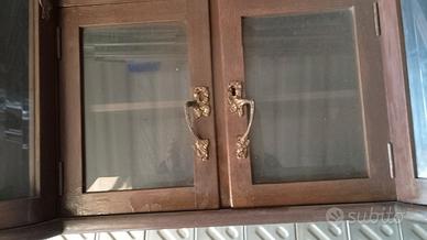 Vetrinetta in legno massello da appoggio su un mobile esistente oppure da appendere al muro, completa di chiave funzionante, anni 40/50 del 900, non spedisco solo ritiro in zona