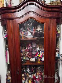 Vetrinetta in legno massiccio completa di collezione di bambole provenienti da tutto il mondo.
