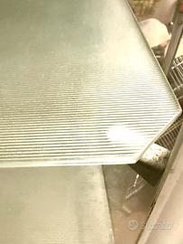 I ripiani sono in vetro zigrinato e regolabili in altezza.