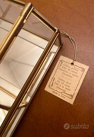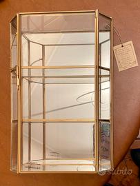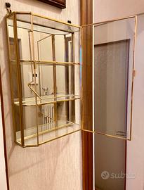Vetrinetta da parete in ottone dorato (oro 24 carati) con ripiani in vetro e specchio. Espositore ideale per gioielli o oggetti da collezione. Realizzato completamente a mano.