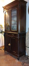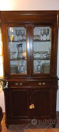 la parte superiore ha 3 ripiani, sportelli in vetro con chiave, la parte inferiore ha 2 cassetti, sportelli in legno con chiave, le 2 parti sono separabili e facilmente trasportabili.