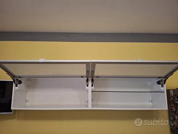 Vendo due vetrinette pensili Ikea con apertura a vasistas in legno bianco e vetro. Utilizzo separate o unite. 50 euro cadauna. Misure di ogni vetrinetta: lunghezza 92 cm, h 39.5, profondità 38 cm.