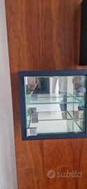 Piccole vetrine 15x27x27, rivestite a specchio, mensola interna in vetro, illuminazione dall'alto, perfette per enfatizzarne il contenuto, ad esempio piccoli oggetti da collezione. Colore blunavy. 40 cad. Oppure 110 tutte e tre.
