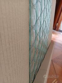 N. 3 rare lastre di vetro originale primi 900 realizzate con la tecnica veneziana del rullo giallo, tipo fondo di bottiglia. sempre ben conservate si presentano in condizioni ottime come in foto. Misure cadauna: 38 x 124 cm. Non spedisco, consegno a richiesta a Palermo e provincia. No perditempo. Prezzo in blocco per tutte e tre: 250 euro